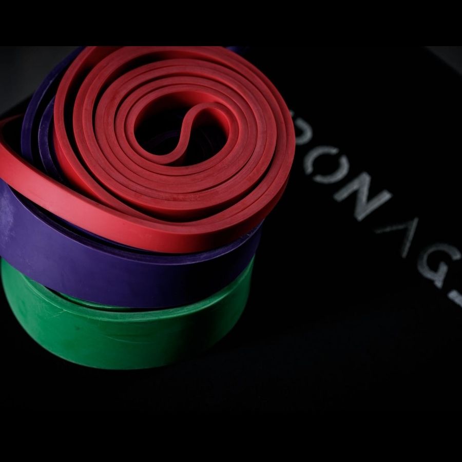 As bandas elásticas estão divididas por espessura e largura: quanto maior o alongamento, maior a resistência à carga aplicada.
